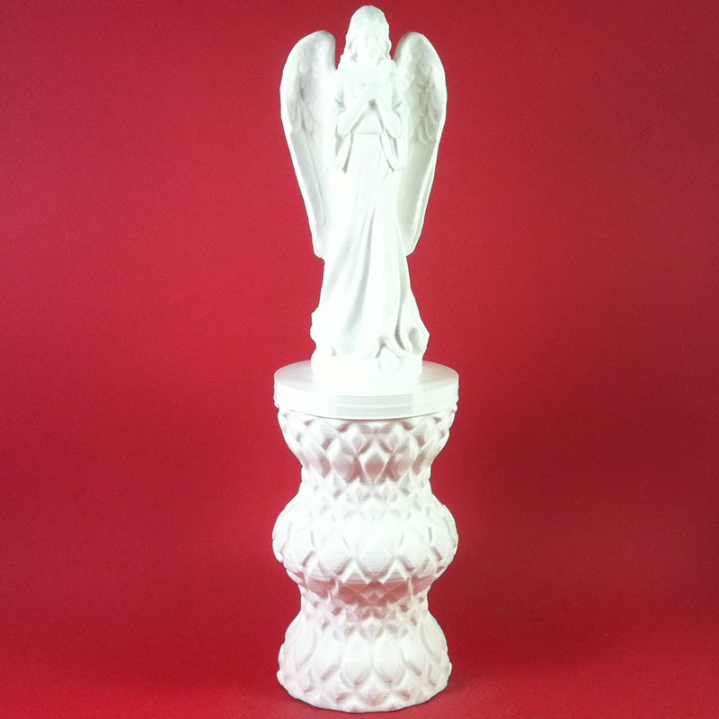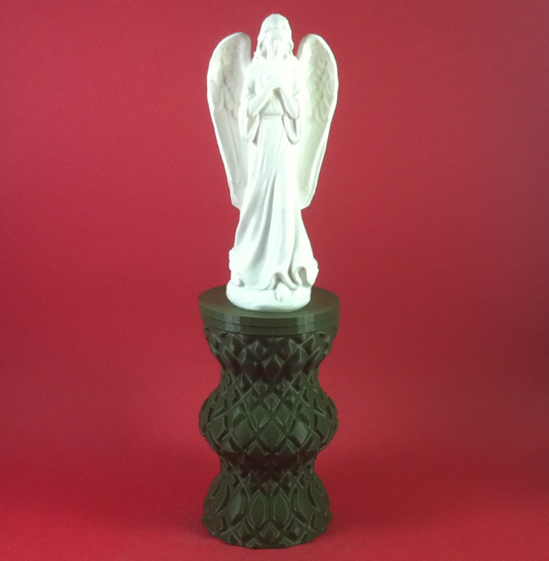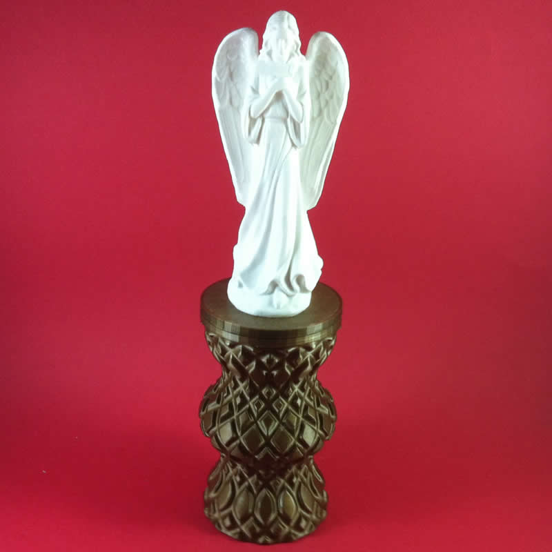 Φωτιζόμενο άγαλμα αγγέλου επάνω σε ηλεκτρικό καντήλι.