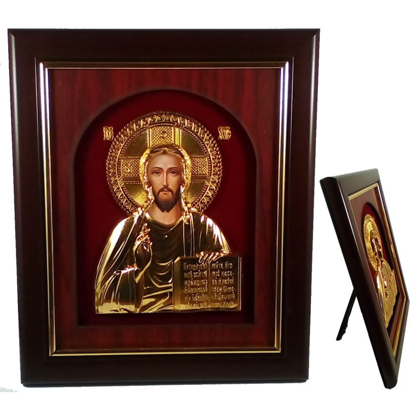 Εικόνα Του Χριστού σε ξύλινο πλαίσιο επάνω σε βελούδο.