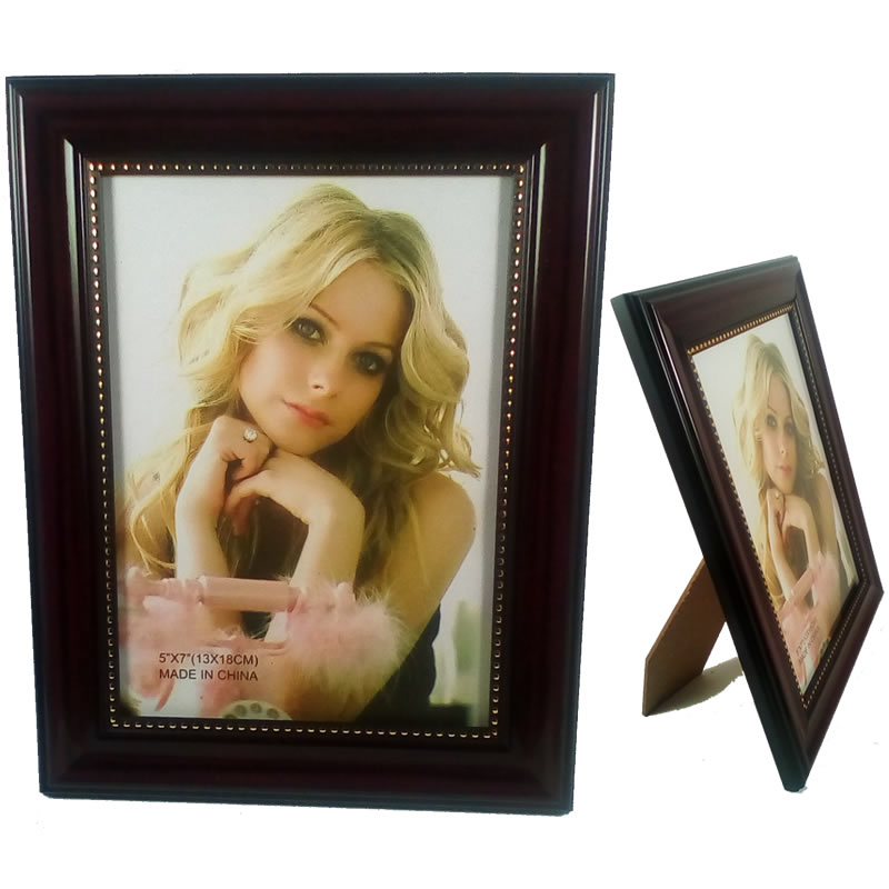 Κορνίζα ξύλινη με μπορντούρα από χρυσές κουκίδες και γυαλί.